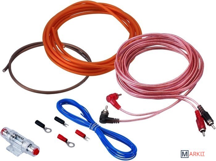 Комплект кабелей для подключения 2-канального усилителя.В комплект поставки входит:- 4,5м 8AWG оранжевый матовый силовой кабель;- 0,7м 8AWG черный матовый силовой кабель;- miniANL держатель с предохранителем на 50А;- 5м 2-канальный RCA кабель витая пара;- 5м 18AWG голубой управляющий провод;- 8 мм клеммы вилка (красн+черн);- клеммы позолоченные кольцевые 8мм (2шт);- изолятор красный/черный.