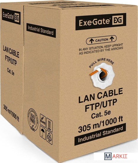 Markit » Кабели, адаптеры, разветвители » Кабель ExeGate FUTP4-C5e-CU-S24-IN-LSZH-OR-305 FTP