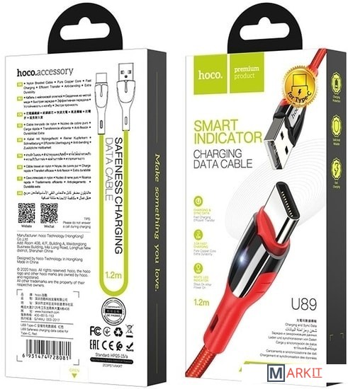 Markit » Кабели, адаптеры, разветвители » Кабель Hoco U89 Safeness USB - Type-C (1.2 м, красный)
