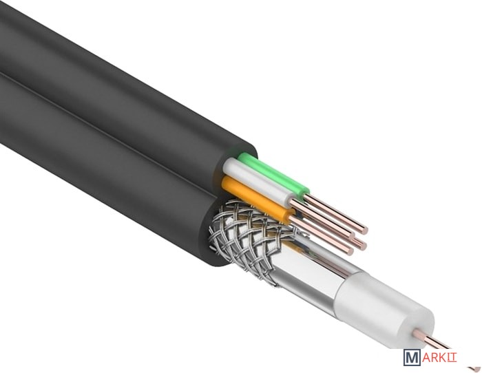 Кабель ККСВ-П + 4х0.5мм REXАNT предназначен для передачи телевизионных сигналов в системах видеонаблюдения с одновременным подключением питания и/или передачи сигналов управления. Кабель ККСВ-П + 4х0.5мм состоит из радиочастотного (коаксиального кабеля и двух жил питания. Коаксиальный кабеля 3с-2v состоит из медного монолитного проводника , вспененного диэлектрика, внешнего проводника из алюминиевых жил в виде оплётки и оболочке из полиэтилена(PE. Жилы питания (медные монолитные в изоляции из ПВХ и оболочке из полиэтилена(PE. Коаксиальный кабель и жилы питания соединены между собой. Кабель имеет форму восьмерки.