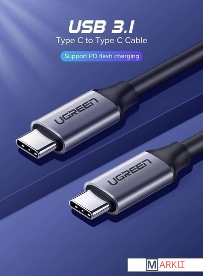 Markit » Кабели, адаптеры, разветвители » Кабель Ugreen US161 50751 USB Type-C - USB Type-C (1.5 м, черный/серый)