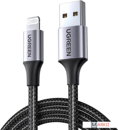 Markit » Кабели, адаптеры, разветвители » Кабель Ugreen US199 60156 USB Type-A - Lightning (1 м, черный/серый)