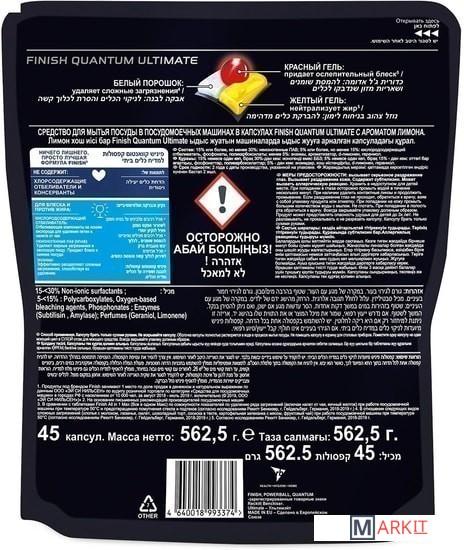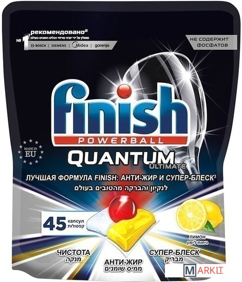 Markit » Средства для посудомоечных машин » Капсулы для посудомоечной машины Finish PowerBall Quantum Ultimate Лимон дойпак (45 шт)
