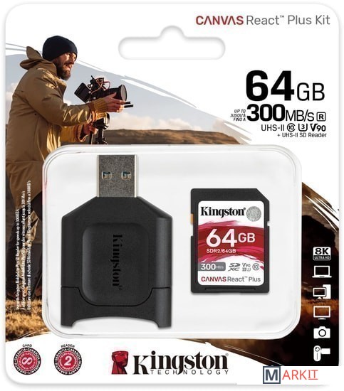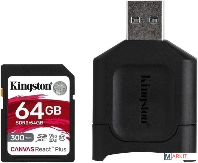 Markit » Карты памяти » Карта памяти Kingston Canvas React Plus SDXC 64GB (с кардридером)