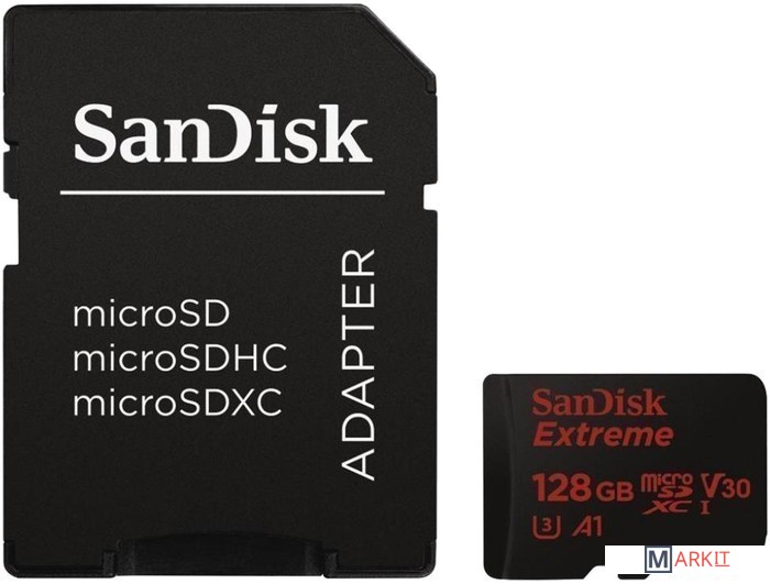 Markit » Карты памяти » Карта памяти SanDisk Extreme microSDXC UHS-I + адаптер 128GB [SDSQXAF-128G-GN6AA]