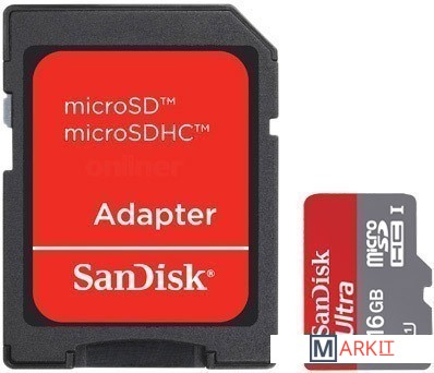 Markit » Карты памяти » Карта памяти SanDisk Ultra microSDHC UHS-I (Class 10) 16GB + адаптер (SDSDQUA-016G)