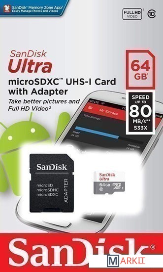 Markit » Карты памяти » Карта памяти SanDisk Ultra SDSQUNR-064G-GN3MA microSDXC 64GB (с адаптером)