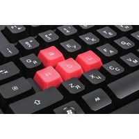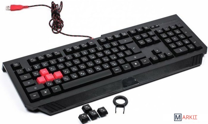 Особенности:• Съемные силиконовые клавиши "ASDW".• Срабатывание клавиш в 1 мс с технологией "AHEAD".• Силиконовые клавиши вибрируют во время движений в играх Hard-core.• Усиленная клавиша Space.• 7 горячих мультимедийных клавиш: Громкость +/-, Mute, Далее/Назад, Стоп, Воспроизвести, Пауза.• 5 типов LED-подсветки: регулировка 100%, 75%, 25% и откл.• Режим блокировки игры позволяет работать в Windows с мультимедийными клавишами во время игры.• Любую клавишу можно настроить как клавишу "Авто-Выстрел".• Водоотталкивающее покрытие + Отверстие для стока воды.