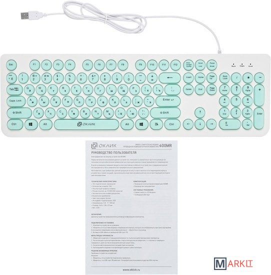 Markit » Клавиатуры » Клавиатура Oklick 400MR (белый/мятный)