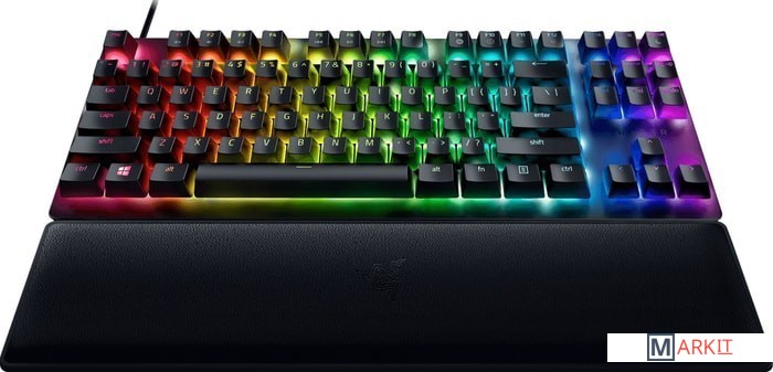 Клавиатура с непревзойденной скоростью отклика еще никогда не была такой стройной. Встречайте Razer Huntsman V2 TKL — оптическую игровую клавиатуру без цифрового блока (Tenkeyless), со сниженным шумом, практически нулевой задержкой входного сигнала и оснащенную различными высококлассными функциями. Компактный форм-фактор этой клавиатуры сочетается с ее полноразмерной функциональностью.Быстрее, легче и надежнее традиционных механических переключателей, и поддерживают реальную частоту опроса до 8000 Гц для более низкой задержки ввода. Доступны в двух вариантах — Линейные (Red) и Щелкающие (Purple).КЕЙКАПЫ ИЗ PBT ДВОЙНОГО ЛИТЬЯЭти колпачки для клавиш прочнее и долговечнее, чем из АБС-пластика. Их поверхность не сотрется до блеска, а обозначения на клавишах будут вечно новыми благодаря двухкомпонентному процессу литья.ЗВУКОПОГЛОЩАЮЩАЯ ПЕНАВнутри корпуса клавиатуры Razer Huntsman V2 TKL имеется слой особой пены, чтобы поглощать любой лязгающий шум, который может возникать при сильном нажатии на клавиши.СЪЕМНЫЙ КАБЕЛЬ USB-CПереноси, подключай и играй на клавиатуре с комфортом на любых LAN-соревнованиях и турнирах. Защелка кабеля гарантирует, что он будет надежно подключен во время игры.ГИБРИДНАЯ ВСТРОЕННАЯ ПАМЯТЬ И ОБЛАЧНОЕ ХРАНИЛИЩЕБудь готов к игре в любой ситуации, благодаря возможности сохранить и активировать до 5 профилей во встроенной памяти, одновременно создавая библиотеку макросов и настроек для использования с облачным хранилищем.