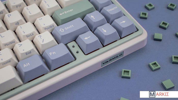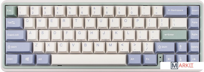 Varmilo — яркая звезда на небосводе китайских производителей клавиатур. Смазанные стабилизаторы, ручная сборка, эстетичный дизайн — каждая клавиатура Varmilo как произведение искусства. Дизайн Minilo вдохновлен работами итальянского художника Джорджио Моранди: сочетает в себе оттенки бежевого, серо-голубого и зеленого.Беспроводная клавиатураПоддержка Bluetooth 5.0 соединения позволит вам скинуть с себя оковы проводного рабства.Встроенный аккумуляторВстроенный аккумулятор на 3000 мАч позволяет клавиатуре работать в беспроводном режиме более 20 дней.Doubleshot ABS кейкапыПриятные и гладкие на ощупь, а символы никогда не сотрутся — ведь они отлиты из пластика.Шумо- и виброизоляцияВнутри две подложки: в корпусе + между платой и плейтом. Они поглощают звуки и вибрации при нажатии и делают процесс печати тише.Если тишина имеет большое значение, рекомендуем заменить заводскую шумоизоляцию на нашу из бипласта.Мягкий на ощупь корпусСделан из пластика, напоминающий покрытие «soft-touch» — шелковистый и приятный.Стабилизаторы, смазанные на заводеСочетание стабилизаторов и смазки делает ход клавиш enter, space, shift, backspace равномерным и плавным.Белая подсветкаИмеет 3 режима: выключена, статичное свечение, эффект затухания, и 4 уровня яркости.Режимы меняются через FN + [ и ], FN + стрелка вверх/вниз меняет яркость в режиме статичного свечения и скорость в режиме затухания.Вместо заводской белой подсветки можно установить кастомную подсветку другого цвета.Сменные клавишиВ комплекте есть дополнительные кейкапы для пробела, Esc, “~” и Enter.Регулируемые ножкиПозволят приподнять клавиатуру и изменить угол наклона для комфортной печати, а прорезиненный низ не даст клавиатуре сдвинуться с места. Мультимедиа и дополнительные FN функцииКлавиатура поддерживает сочетания клавиш для регулировки громкости и управления музыкой. Также можно отключить кнопку windows и поменять клавиши Fn и Win/Ctrl и Caps Lock местами.Функция Full N-key Rollover по USB (NKRO)Позволяет нажимать одновременно неограниченное количество клавиш. Удобно в игре, когда нужно прожимать многокнопочные комбинации.Осторожно, старые BIOS-ы могут не реагировать на клавиатуру из-за NKRO.Если ALT и WIN поменялись местами или сбились назначения клавиш:Зажмите Fn + D + Backspace, пока не заморгает CapsLock (Сбросить настройки клавиш)Fn + D (Сброс до заводских настроек)