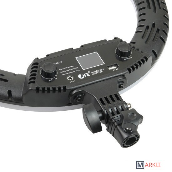 Falcon Eyes BeautyLight 450R LED – компактный биколорный кольцевой осветитель Ø45 см, на световой панели которого расположено 416 светодиодов «теплого» и «холодного» света, с плавно регулируемой цветовой температурой и мощностью светового потока от 10 до 100% (65 Вт).В осветительном приборе предусмотрены 5 динамических световых спецэффектов, которые разнообразят видеоряд и сделают съемку креативнее.Держатель смартфона, пульт дистанционного управления и сумка для переноски осветителя входят в комплект.Кольцевые осветители серии BeautyLight используются в качестве источника постоянного света различных сферах фото- и видеопроизводства.Такие осветители пользуются большой популярностью у блогеров, косметологов, визажистов, фотографов и видеографов, в задачи которых входит съемка людей крупным планом. Кроме того устройства часто задействованы в предметной съемке, записи мастер-классов, обзоров и многого другого.Мягкое бестеневое освещение выравнивает тон лица, сглаживает неровности и представляет объект съемки наилучшим образом. Кольцевая форма создает интересные блики в глазах или на блестящих поверхностях.