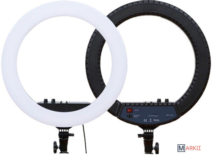 Кольцевой профессиональный осветитель Ring Light HQ-18 разработан как инструмент фотографа для бьюти фотографий, для получения правильной и красивой заливки лица при съемке, а также получения необычных бликов в глазах модели в виде кольца. Легкая и удобная кольцевая лампа, со специальной сумкой в комплекте, идеально подходит для повседневного использования, эта модель особо пригодится тем, кто работает на выезде. Плавная регулировка яркости (диммер) позволит настроить необходимый уровень освещения. Регулировка цветовой температуры создаст нужный оттенок в вашей работе или зоне нахождения. Матовый рассеиватель светового потока делает явные границы переходов мягкими и незаметными. Данные качества являются немаловажными, поскольку многим фотографам необходим строго определенный цвет для создания того или иного фотоснимка. В комплектацию данной модели входят несколько элементов, которые станут неотъемлемыми для каждого высококвалифицированного специалиста.
