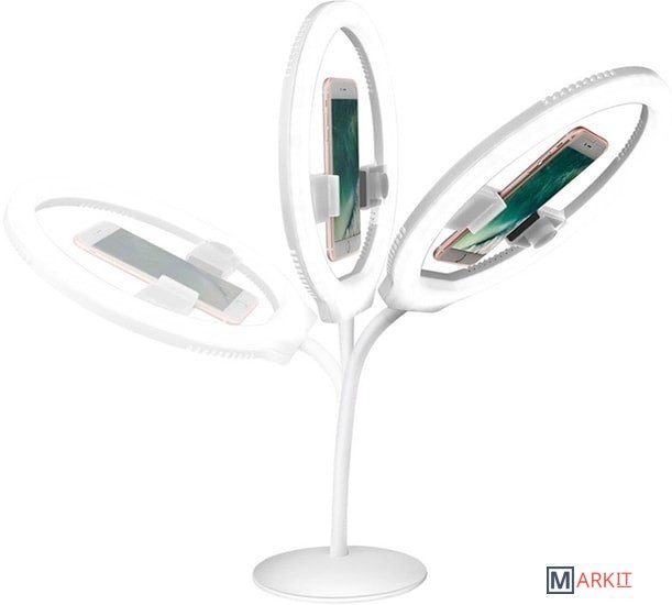 Портативная светодиодная кольцевая лампа.В комплекте идет держатель с гибкой опорой, с помощью которого можно удобно регулировать высоту и угол наклона лампы.Источник питания в комплект поставки не входит.