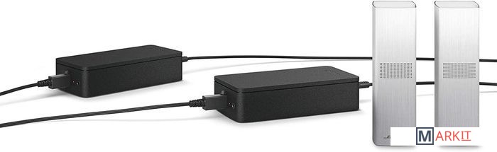 | Комплект поставки | - колонки (2 шт.);- беспроводной модуль и 2 адаптера;- кабели питания;- аудиокабель для соединения беспроводного модуля и колонок; |