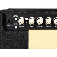 CM30R предлагает широкий диапазон чистого и перегруженного звучания с кристально чистым каналом Clean и насыщенным каналом Overdrive с независимыми регуляторами усиления и громкости и трехполосным эквалайзером с регуляторами высоких, средних и низких частот, специально разработанным для тонального диапазона электрогитары. Контроль усиления обеспечивает широкий диапазон перегрузки от блюзового кранча до зашкаливающего современного дисторшена. Каналы переключаются с помощью кнопки, что делает CM30R еще более универсальным.