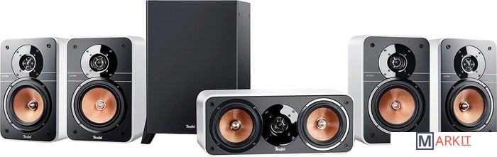 фронтальные колонки, центральная колонка, тыловые колонки, проводной сабвуфер