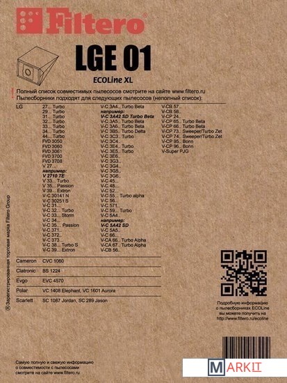 Markit » Аксессуары для пылесосов, пароочистителей » Комплект одноразовых мешков Filtero LGE 01 ECOLine XL (10 шт)