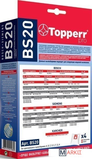 Markit » Аксессуары для пылесосов, пароочистителей » Комплект одноразовых мешков Topperr BS20