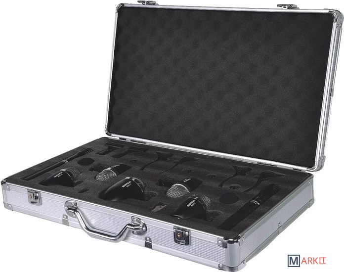 Комплект микрофонов для ударных установок. Включает в себя один микрофон для басового барабана, три микрофона для малых барабанов/томов и два микрофона для хай-хэтов.