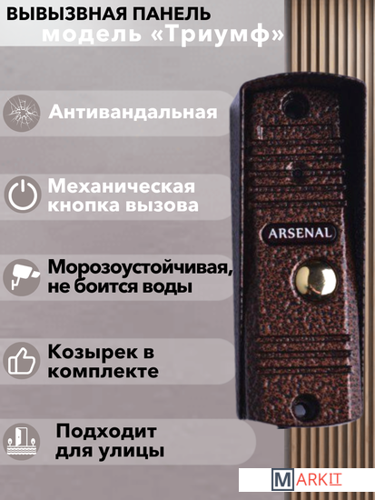 Markit » Видеодомофоны » Комплект видеодомофона Arsenal Афина + Триумф (белый/медь)