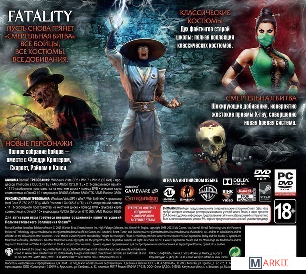 • персонажи Скарлет, Кенши, Рейн и Фредди Крюгер;• 15 классических костюмов;• 3 классических добивания для Скорпиона, Саб-Зиро и Рептилии.