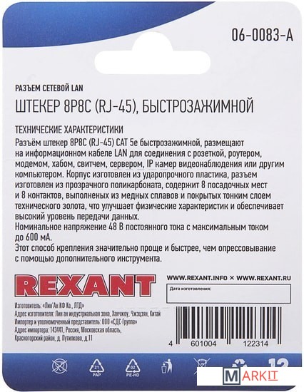 Markit » Кабели, адаптеры, разветвители » Коннектор Rexant 06-0083-A