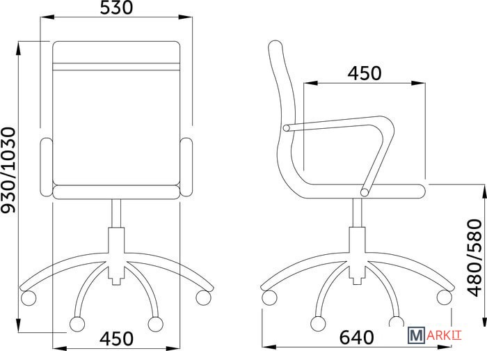 Ширина кресла 53 см
