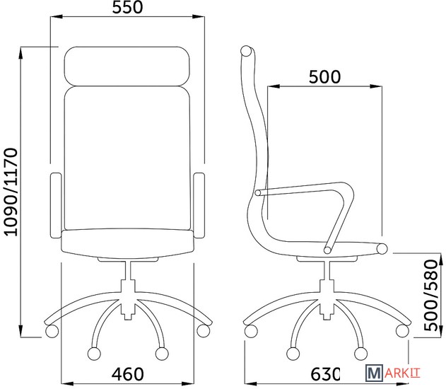 | Высота кресла | 109 — 117 см |