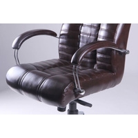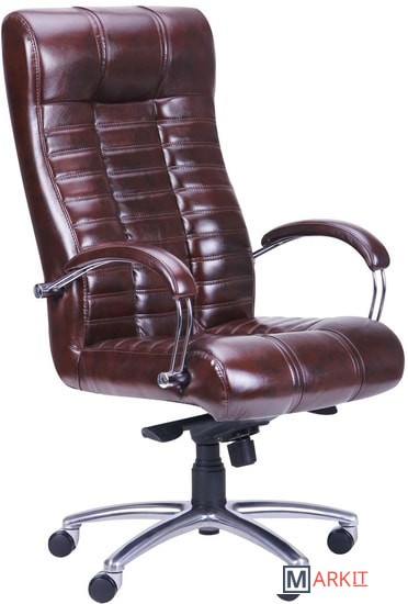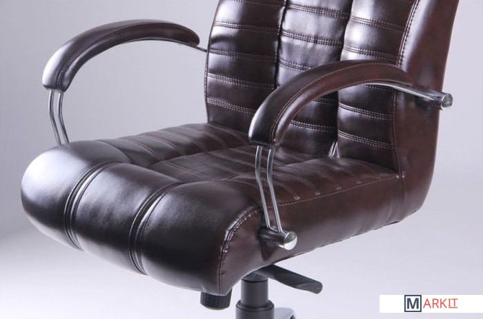 Кресло изготовлено из двух видов материалов. Задняя часть сделана из искусственной кожи повышенной износостойкости, которая по внешним признакам почти неотличима от натуральной кожи.