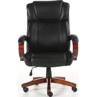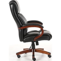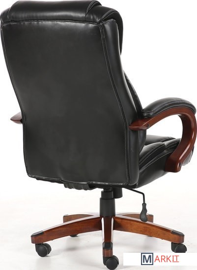 Обивка кресла выполнена из рециклированной кожи - современного материала, созданного из измельченных частиц натуральной кожи. По эластичности и прочности рециклированная кожа максимально близка к натуральной. Материал хорошо пропускает воздух, что положительным образом сказывается на комфорте во время эксплуатаци. Рециклированная кожа износоустойчива, кресло способно сохранять привлекательный внешний вид длительное время.Перфорация в центральной части кресла способствует дополнительной циркуляции воздуха.Плотная набивка, широкие деревянные подлокотники с мягкими накладками, высокая спинка и широкое сиденье с плотной набикой - просторные габариты обеспечивают великолепную эргономику данной модели.Сочетание рециклированной кожи с контрастной отстрочкой и деревянных элементов без сомнений подчеркнут статус своего владельца.