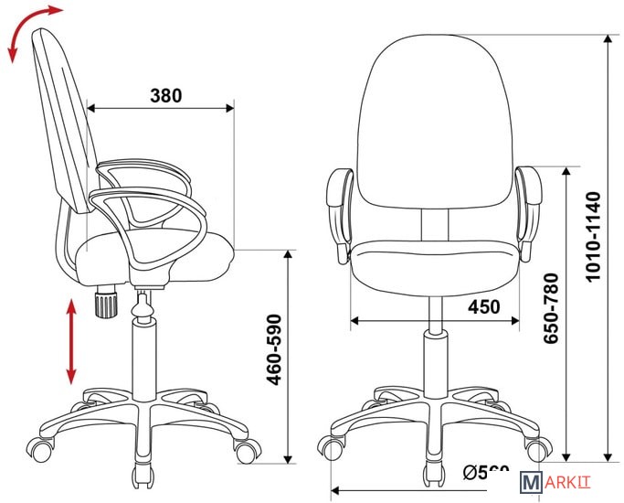 | Регулируемый наклон спинки | ✘ |