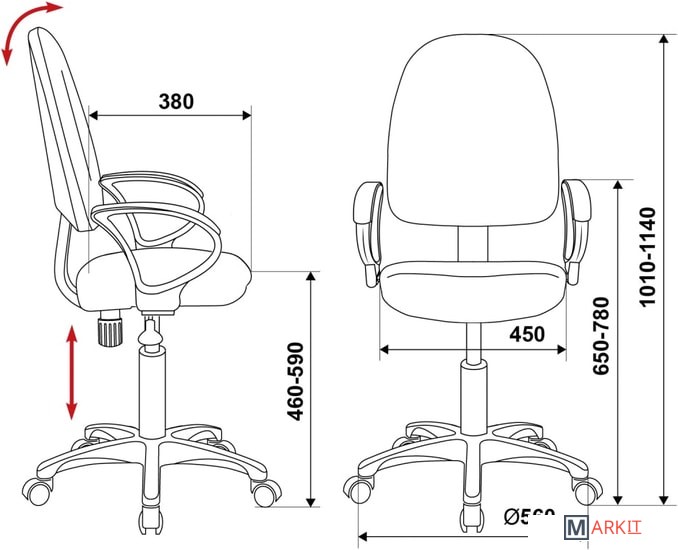 | Регулируемый наклон спинки | ✘ |