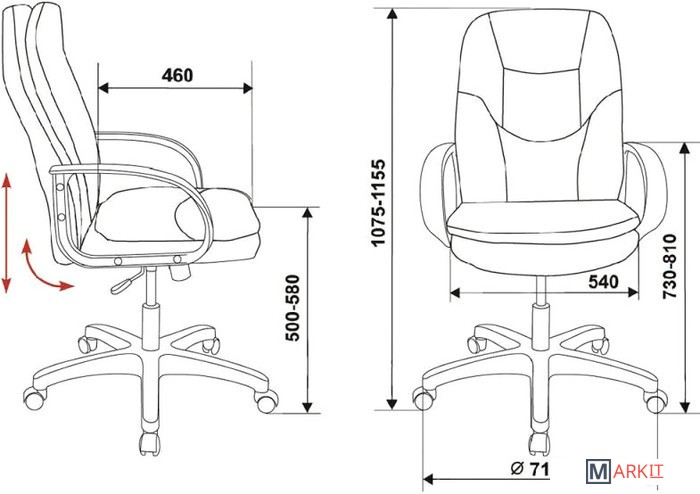 | Регулируемый наклон спинки | ✘ |