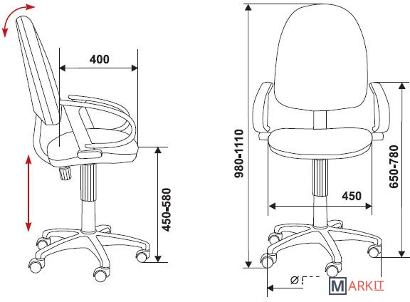 Тканевое рабочее кресло- регулировка высоты (газлифт);- пружинно-винтовой механизм качания спинки с регулировкой под вес;- ограничение по весу: 120 кг.