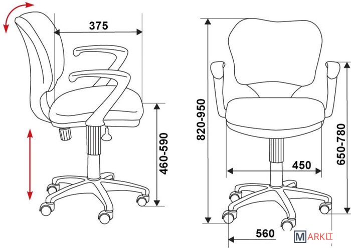 | Регулируемый наклон спинки | ✘ |