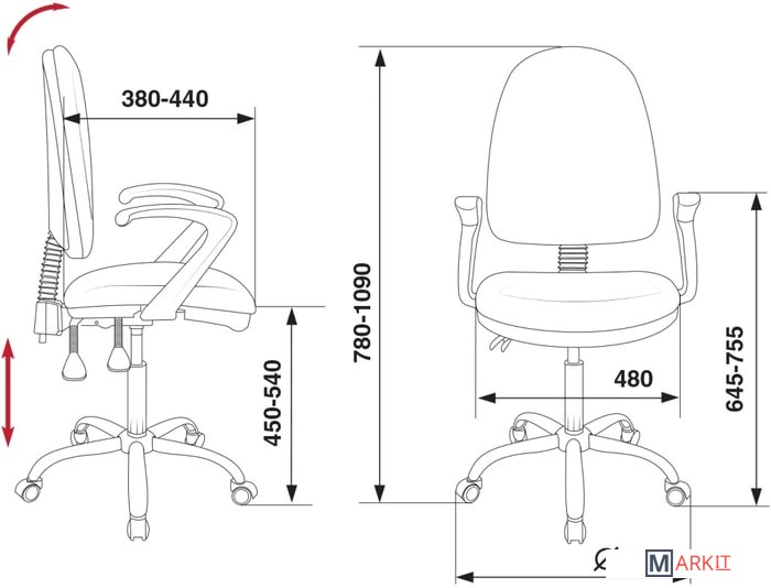 | Регулируемый наклон спинки | ✔ |