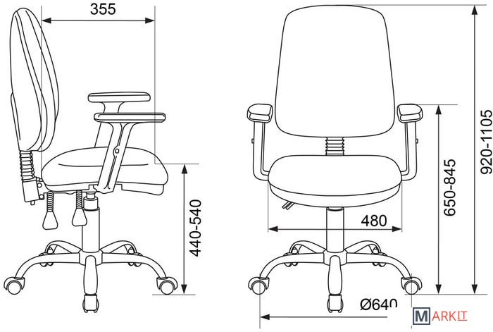 | Ширина | 64 см (с крестовиной) |