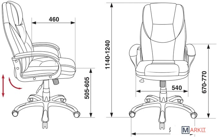 | Регулируемый наклон спинки | ✘ |