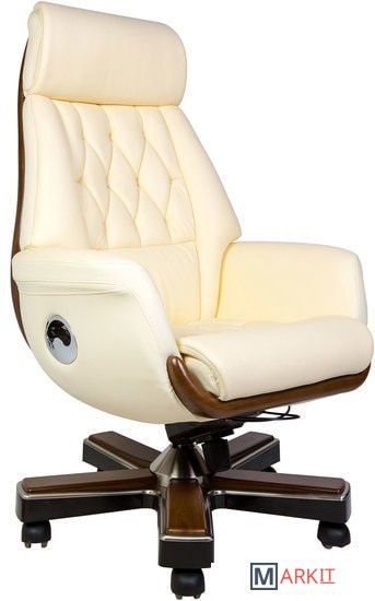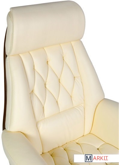 Классическое кресло с простежкой спинки типа «каретная стяжка», выполнено из натуральной кожи высшего качества. Кресло оснащено синхро-механизмом, с фиксацией наклона в любом положении. Вставки из натурального дерева гармонично интегрированы в корпус кресла.