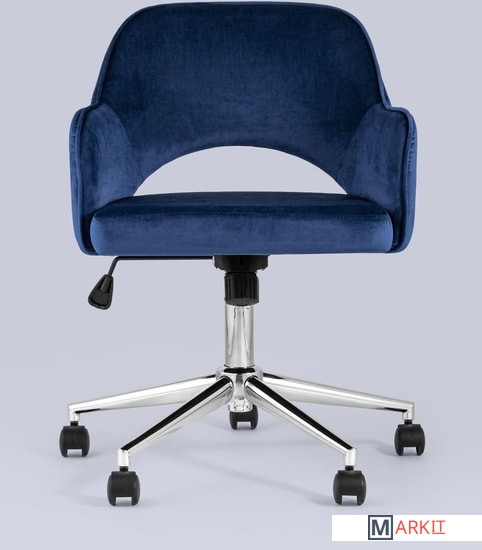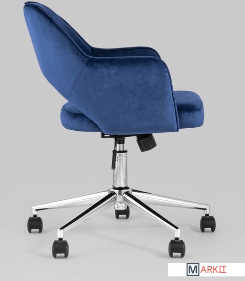 Уютное и стильное офисное кресло в обивке из велюра. Комфорта добавляют удобные подлокотники, а благодаря механизму регулировки высоты и качания можно выбрать удобное положение.Удобная спинка оказывает качественную поддержку и позволяет провести в кресле долгое время без усталости. Каркас изготовлен из хромированного металла и позволяет выдержать нагрузку до 120 кг.