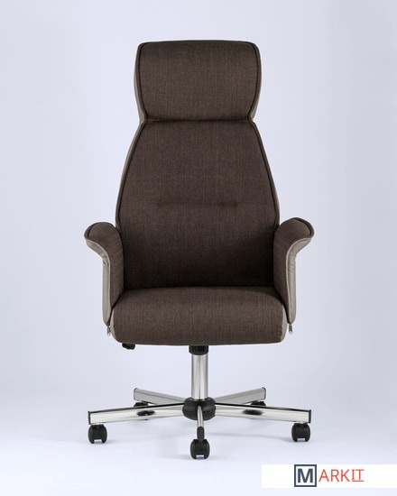 Современное и функциональное кресло для руководителя.Обивка выполнена из качественной экокожи в сочетании с практичной тканью. Комфорта добавляют удобные подлокотники, а благодаря механизму регулировки высоты и качания можно выбрать наиболее удобное положение.Высокая спинка оказывает качественную поддержку и позволяет провести в кресле долгое время без усталости. Каркас изготовлен из металла и выдерживает нагрузку до 120 кг.