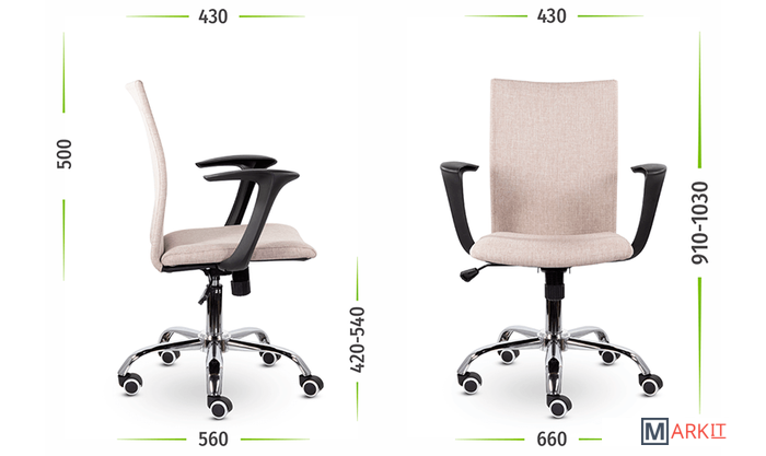 Компактное кресло имеет износостойкую обивку и удобные S-образные подлокотники. Широкая эргономичная спинка сделают рабочий день максимально комфортным.