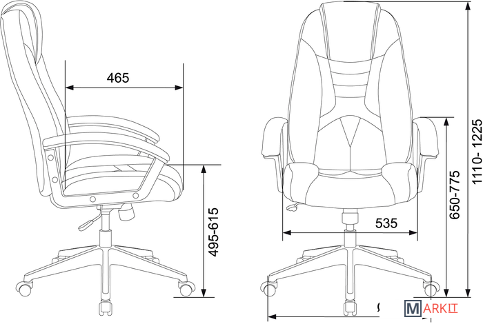 | Высота кресла | 111 — 122.5 см |