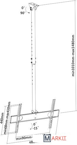 Расстояние от стены (потолка) 1 010 — 1 480 мм