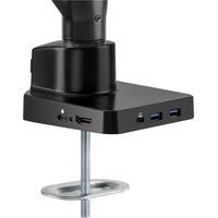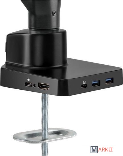Регулируемый кронштейн из алюминиевого сплава Spring&Docking премиум уровня со встроенной в основание док-станцией оптимизирует рабочее пространство, обеспечивая легкий доступ к быстрой зарядке, передаче данных и порту HDMI 4K для дополнительного дисплея. В комплекте с кронштейном идет полнофункциональный кабель USB-C, который обеспечивает передачу данных USB 3.0 между ПК и ноутбуком. Съемная пластина VESA позволяет легко устанавливать и снимать монитор.Регулируемый кронштейн из алюминиевого сплава с встроенной в основании док-станцией.Крепление подходит для мониторов диагональю 17-32" и весом до 8 кг.Механизм регулировки - механическая пружина премиум уровня.Наличие многофункциональной док-станции:2 порта USB-A 3.0 Downstream (5Gbps);1 порт HDMI 2.0 (4k@60 Hz);1 порт RJ45 Ethernet (1000 Mpbps);1 порт USB-C (питание и передача данных);1 порт USB-C 100W PD (только для питания);индикатор Power Light.