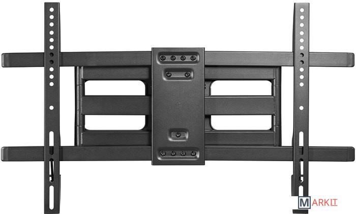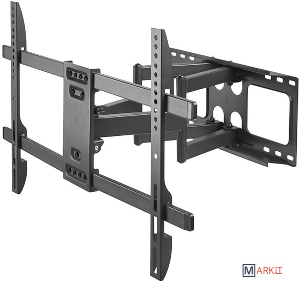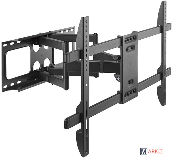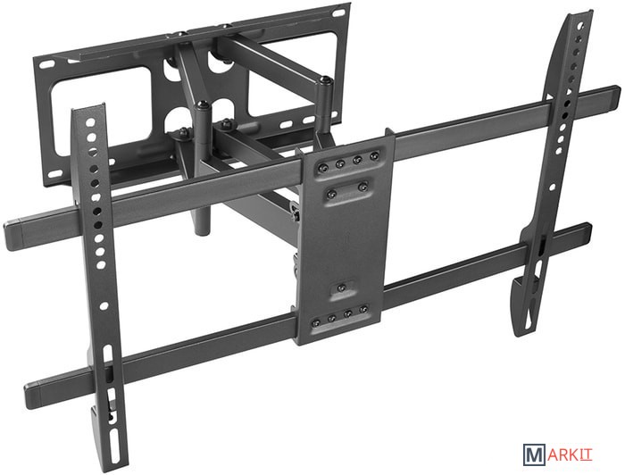 Если вам нужен крепкий, надёжный и удобный в настройке кронштейн для широкоформатных жидкокристаллических (LED или LCD) телевизоров, то вам точно подойдёт Harper TVFW-70. Он обеспечивает установку устройств с диагональю от 37 до 80 дюймов, весом до 60 кг. Конструкция кронштейна позволяет выставить нужный угол наклона (-15°+5°), угол поворота и даже тонко настроить горизонталь уже после крепления несущей планки к стене. Расстояние от стены до корпуса телевизора может быть в пределах 58-400 мм. Поддерживаются стандарты VESA от 200x200 до 600x400.