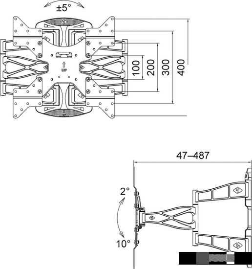 Совместимость с креплением VESA 100x100, 200x100, 200x200, 300x200, 300x300, 400x300, 400x400