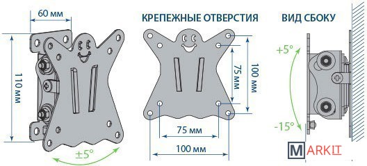 | Совместимая диагональ экрана | 10 — 26 " |