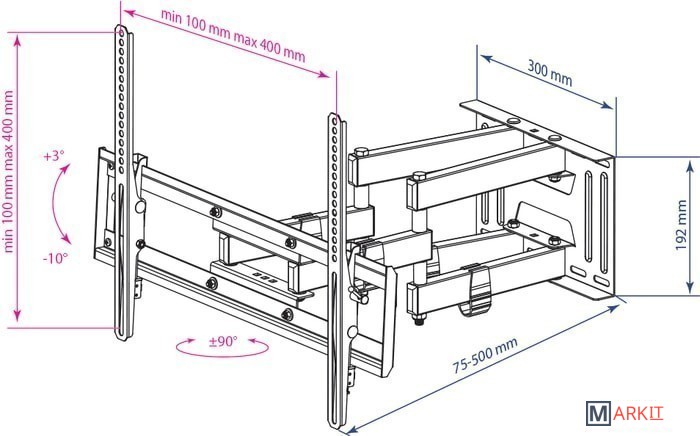 | Расстояние от стены (потолка) | 75 — 500 мм |